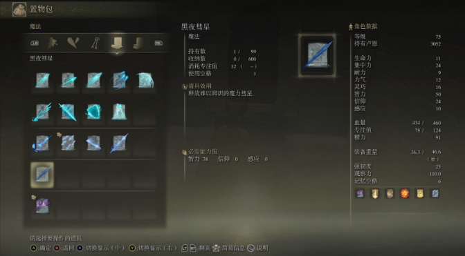 前期陨石杖+岩石球组合推图无压力,拿到女王杖后优先强化到+7。右手武器建议配名刀月隐或回旋斩长牙防身,水母盾则是增伤神器,开战前切盾放战技再换法杖。加点顺序很明确:智力优先冲到80,集中力加到38保证6发帚星蓝耗,力量敏捷够拿装备即可。血量建议30左右,避免被秒杀。
