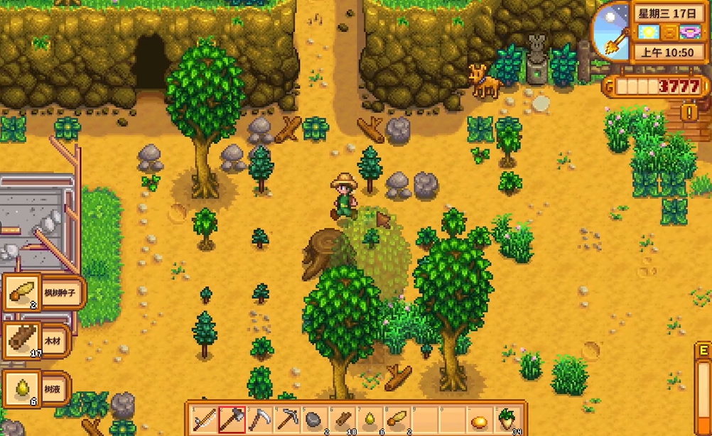 星露谷物语里种枫树首先得搞到枫树种子。枫树种子可以通过砍伐成熟的枫树获得,每次砍树都有概率掉落种子。翻垃圾桶或者用锄头挖枫树周围的土地也可能捡到种子。种子拿到手后,记得选个周围3×3范围内没有障碍物的空地种下,每天有20%的几率生长到下一阶段,10到12天就能长成大树。冬天枫树不会生长,所以最好在春夏秋三季种植。