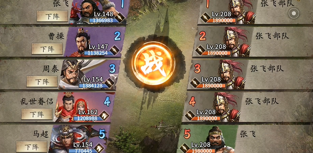 战斗中需注意敌方张飞的被动吸血特性,避免被其残血反杀。战术细节上,貂蝉和司马懿的反制环节是通关核心,需多次练习以掌握战法释放时机。若资源有限,可优先强化司马懿的喷火车和御宝,确保反制成功率。