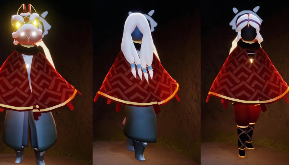 葫芦头的深棕色系对斗篷颜色包容性较高,但需注意饱和度搭配。低明度的斗篷(如暮土黑斗、霞谷深蓝斗)能压住发型的跳脱感,而高明度的斗篷(如彩虹日浅粉斗)则需用腰带或裤子过渡。若想尝试撞色,推荐选择小面积亮色配饰,比如圣岛季的贝壳项链,避免全身色彩失衡。