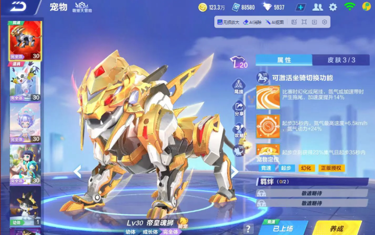 骑宠的培养和进阶是提升战力的关键。通过喂食和训练可以提升骑宠等级,进阶则需要消耗特定资源,但进阶后的骑宠属性和技能都会大幅增强。骑宠技能分为主动和被动两类,主动技能在比赛中手动释放,被动技能则自动生效。合理搭配技能和赛车特性,能让咱们在比赛中如虎添翼。
