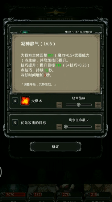 BOSS战分为常规与狂暴两阶段,前者需保持神官骑士持续嘲讽并手动治疗传奇法师,后者需注意2分30秒左右的狂暴时间节点。传奇法师奶量需超过750点并附加队友最大生命值1%的余量,确保能抵消BOSS的群体伤害和持续dot效果。输出位应放弃力速比追求单次攻击最大化,狂战仅开启2技能,火法专注火球术输出。若进入狂暴阶段,需手动提高治疗频率,优先保证传奇法师存活。