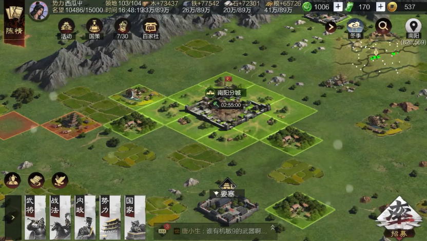 重建过程中的战略部署需要重点考虑地理位置选择。建议优先选择州内中央区域或资源密集区,确保分城能有效发挥资源采集和军事调度功能。重建后的分城与主城资源收益、仓库上限、名望上限可叠加,但军事类加成分城独立计算。分城部队无法享受主城兵营加成,主城部队也无法在分城征兵。