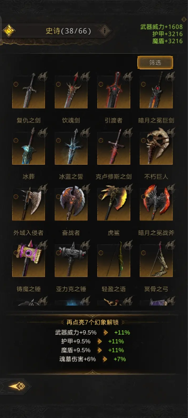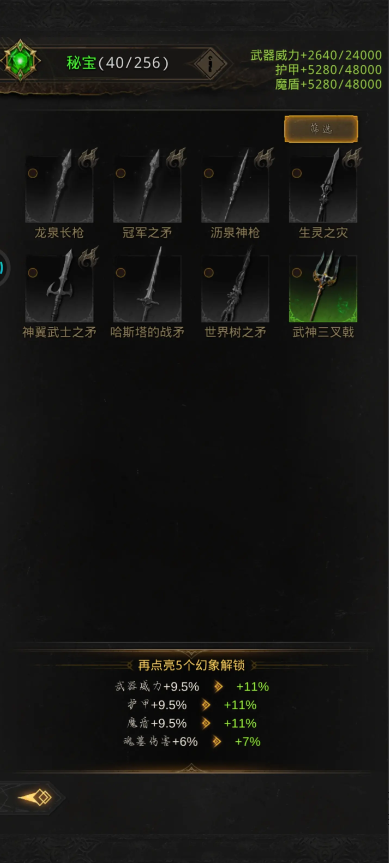 神兵库中的装备幻象分为多个品质等级,品质越高提供的属性加成就越显著。玩家可以通过消耗特定材料来提升幻象等级,从而获得更强的属性效果。提升幻象等级需要合理规划资源分配,建议优先升级核心角色的关键属性幻象。随着游戏进程的深入,还会解锁更多幻象槽位,允许玩家同时激活更多幻象效果。