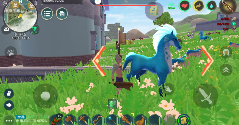 骑马是探索广袤世界的重要方式之一。首先需要在地图上找到马匹,通常分布在平原或草原区域,靠近水源的地点出现概率较高。找到目标后,需准备对应的饲料进行驯服,例如灰马需要小麦或胡萝卜,红马则需要辣椒饲料包、小麦饲料包和优质肉。驯服过程中需注意将马匹血量降至安全范围,避免将其击杀,随后投喂饲料直至出现可捕获提示。成功驯服后,马匹会自动进入坐骑栏,需确保已制作鞍具(需木材和兽皮)并装备至坐骑栏。