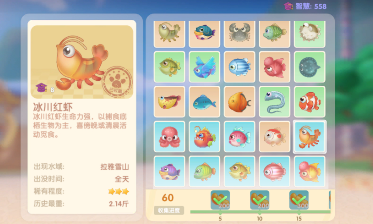 冰川红虾和冰川虾是另一种常见的虾类,它们同样分布在拉雅雪山的水域中。冰川红虾的生命力较强,以捕食底栖生物为主,喜欢在傍晚或清晨活动觅食。玩家需要使用中级或高级鱼饵才能提高捕获概率。冰川虾的获取方式与冰川红虾类似,但它的出现时间和条件略有不同。玩家需要根据游戏内的提示,合理安排垂钓时间,以提高捕获成功率。