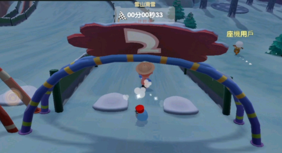 滑雪时有三条不同赛道可选,全程用左侧摇杆控制方向。滑到终点会显示用时,最快纪录能到15秒左右,多练几次就能刷新成绩啦。结束后想回起点,可以坐最右侧的热气球快速传送,但会加载场景;如果想慢慢欣赏风景,可以走传送带,不过速度会慢一些。