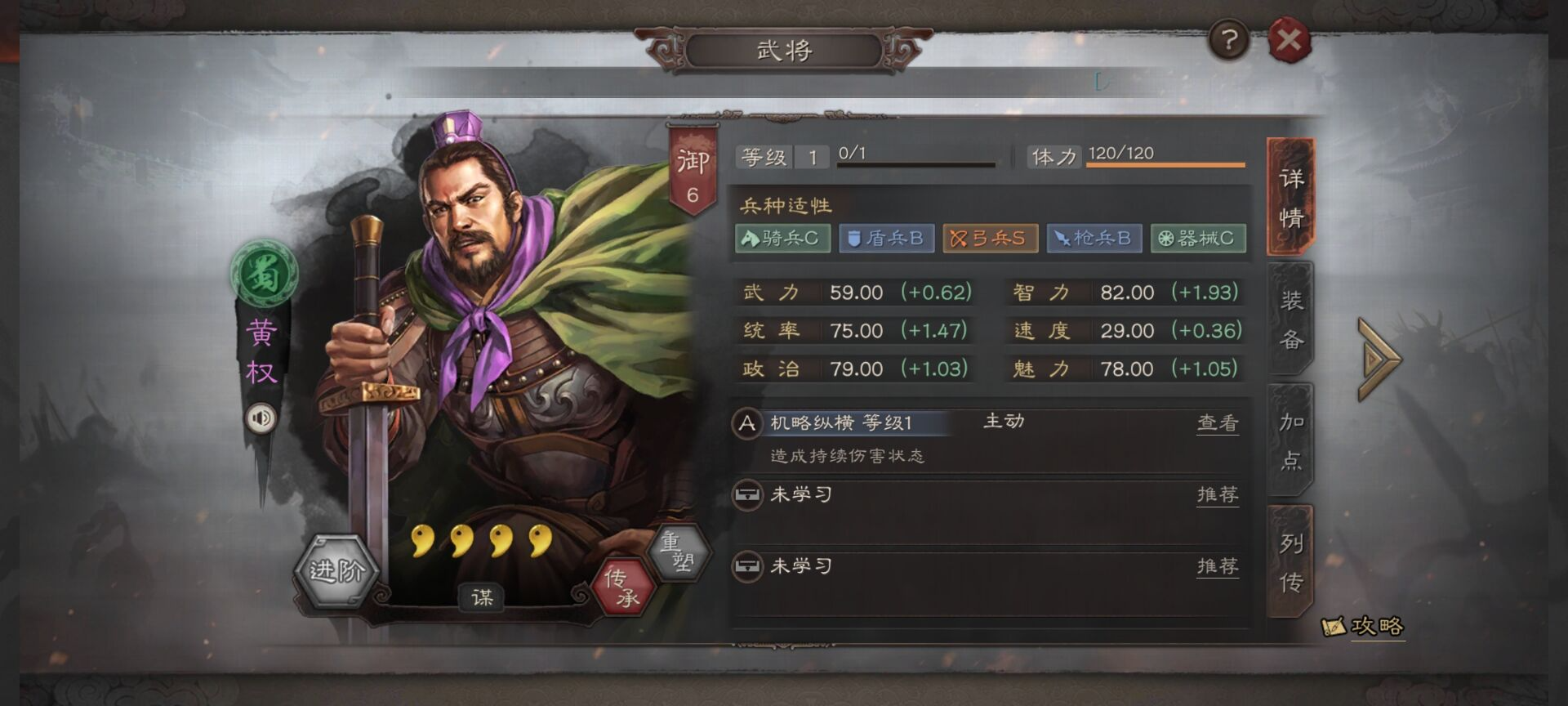 士气在战斗中非常重要,每行军一格会降低一点士气,而士气低的话伤害也会变弱。所以如果发现部队士气不足,最好先回城休息恢复,别硬着头皮上,否则很容易翻车。新手期体力消耗较少,可以多利用这个阶段多打地练级,过了新手期体力消耗会增加,所以尽量在新手期内多发育。如果阵容一般或者兵力不够,可以先从简单的五级地入手,比如守军是黄权、沙摩柯这类相对好打的队伍。难啃的硬骨头比如刘封、曹彰队可以等实力更强了再去挑战。