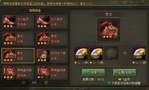 装备洗炼千万别浪费金币在70级前的红装以下装备上,这些装备升级快但提升空间小,洗了也是白搭。重点洗炼四星紫装,先用免费次数洗到333,再慢慢优化。夏侯淳最好穿强防和强攻装,甘宁可以加点强壮提高生存,马超适当带掌控减少战法伤害,许褚有啥穿啥,但优先保证血量。如果装备洗得好,副本难度会直线下降,典韦根本扛不住咱们的爆发。