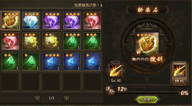 晶石进化至神石需更高条件:需6个20阶技能石且技能满60级,通过点券兑换卷轴完成。神石属性加成显著,如10级神石可提供攻击+1000、防御+600、带兵+1600的增益。技能精炼时建议优先保留爆击、斩杀等高实用性属性,韧性因触发概率较低可酌情舍弃。精炼技巧上,可采用吃宝石重置数据策略,即每5-6次无脑精炼后消耗1-2颗低级宝石刷新概率。