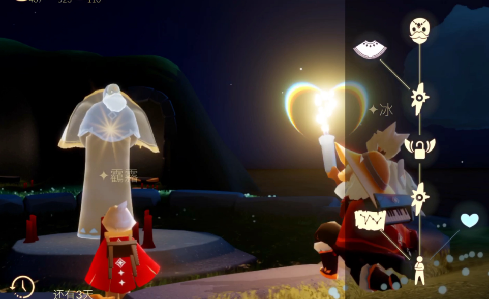 游戏货币体系分为白蜡烛、季节蜡烛和升华蜡烛三种。白蜡烛通过收集地图烛火合成,用于兑换装扮和好友互动;季节蜡烛通过每日任务获取,限定兑换季节性物品;升华蜡烛需在暴风眼献祭光之翼获得,用于解锁永久光翼节点。社交系统采用渐进式解锁机制,初次相遇的玩家需互相点亮才能显示外观,添加好友需消耗1根白蜡烛,解锁聊天功能需额外消耗5根蜡烛。石凳和特定道具可实现陌生人临时对话,这是游戏设计的独特社交切入点。
