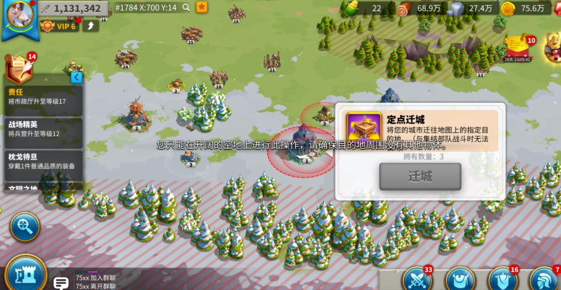 联盟转移的核心在于战略规划而非单纯操作。更换联盟前需评估目标联盟的活跃度、领土范围及成员构成,通过地图坐标或联盟列表查询目标联盟中心位置。加入新联盟需满足对方设定的战力或贡献要求,部分活跃联盟会设置审批流程。迁移至联盟领地时,若主城等级低于8级可使用新手迁城道具,高级玩家需通过常规迁城令实现,且必须确保目标位置位于联盟领土范围内。