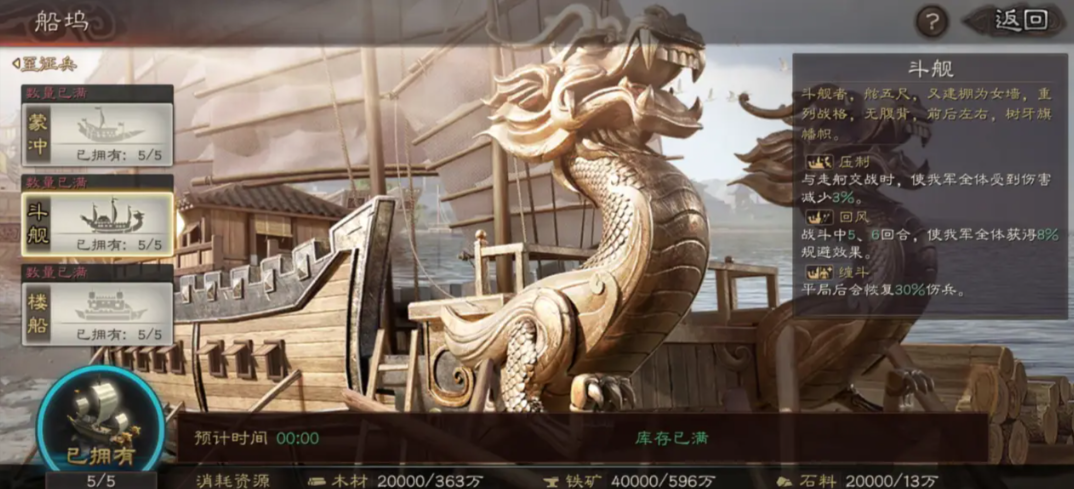 蒙冲、斗舰等高级舰船的中级和高级特性可以增强部队属性或提供特殊效果,比如提高行军速度或增加伤害。如果船坞等级够高,还能提升武将的水军适性,让B/C级适性的武将在水战中表现更好。确保部队携带的舰船不被摧毁,否则需要重新建造,耽误进攻时机。
