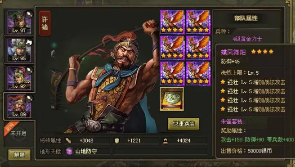 太史慈是朱雀套装的首选武将之一,其战法可释放两次,配合套装加成能对敌方造成毁灭性打击。黄忠凭借高勇属性,穿戴朱雀套装后战法命中率与伤害进一步提升,尤其在武斗中表现突出。甘宁的战法威力与距离己方城池远近相关,朱雀套装能放大其近距离战法的爆发效果,适用于快速清剿敌方部队。许褚的战法特性是敌方数量越多伤害越高,搭配朱雀套装可在混战中发挥最大价值。