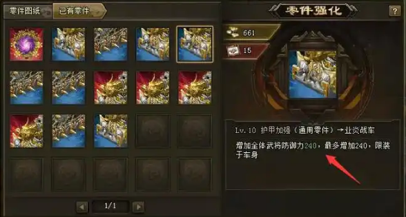 战车系统包含车轮、动力、负载三类设施,环首车橹属于负载类战车,侧重攻击加成。打造后需通过神锤砸宝石活动强化属性,建议优先镶嵌攻击类宝石(如斩杀石)。强化时需平衡资源分配,避免过度消耗镔铁。战车可装备箭塔或火枪等武器,需根据对手类型调整配置,例如对抗防御型阵容时选择高破甲武器。