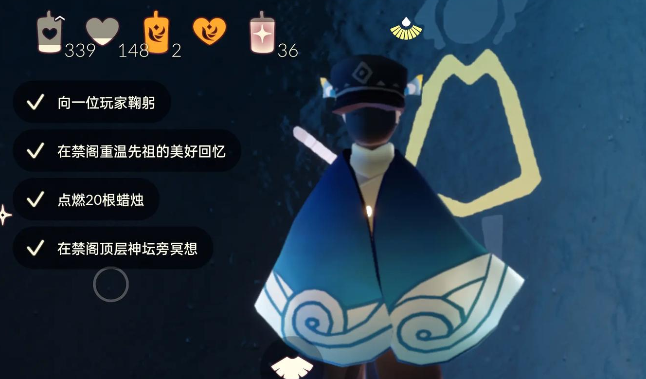 兑换海军帽需要消耗3颗爱心作为主要货币。在此之前需用2根白蜡烛解锁前置魔法节点。爱心可通过与好友互赠或完成先祖基础节点兑换获得。该先祖属于季节性内容,其出现与复刻时间需关注游戏内公告,非固定常驻兑换项目。追忆过程中需跟随先祖影子完成简单的光点收集。