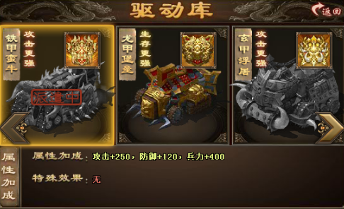 战车的驱动系统是强化战车性能的关键要素,不同驱动会改变战车的造型和属性加成。蚩尤驱动作为第一战车的基础配置,能提供攻击+250、防御+120、兵力+400的基础属性。战车武装流程包含五个阶段:完成战车打造后进行重铸改装,接着铸造零件并按照规则安装,随后进行零件强化,最终通过重铸将零件属性提升至最高值。武装战车可以携带两个挂饰,而普通战车只能装备一个挂饰,挂饰属性会随着突破次数增加而提升,这是战车培养的重要细节。