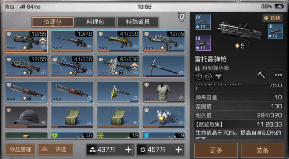 属性优先级方面,满攻击与满暴击是雷托的基础要求,其次考虑射速和感染者伤害加成。射速能有效弥补霰弹枪攻速缺陷,而感染者伤害在副本中收益显著。盾牌已提供毁伤效果时,武器不必重复堆叠该属性。对于专精提升,建议优先强化暴击相关属性,通过纳米材料逐步提升专研等级,零氪玩家可通过日常积累实现满专研。