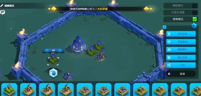 完成基本造型后,别忘了测试实际使用功能。检查所有资源点是否可正常采集,部队能否畅通无阻地移动。夜间灯光效果会影响视觉呈现,最好在不同时段观察调整。保存多个版本布局是个好习惯,方便随时切换不同风格。最后分享个小技巧,先用低等级建筑确定位置,升级后再统一更换高级建筑会更省资源。