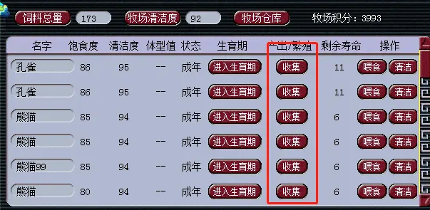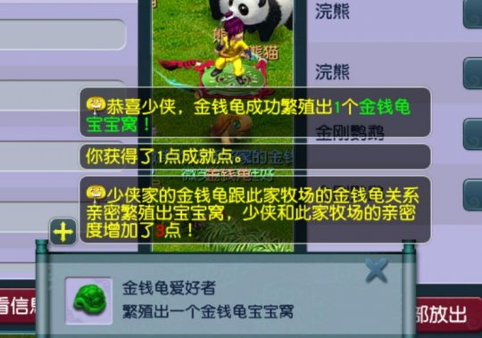 养殖过程中注意控制饱食度,不同动物对饲料需求差异很大。孔雀类只需初期喂一次饲料,后续几乎零成本维护。树袋熊需在成年第一天喂满,之后保持80以上饱食度即可。金钱龟和熊猫则需要更精细的喂养策略,成年后前几日需满饱食度,后期可适当降低。清洁度和饱食度总和会影响繁殖成功率,记得每天顺手打扫牧场。
