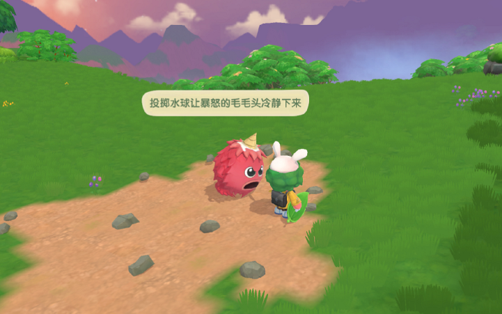 就是你成功用水球砸中毛毛头之后,它头上冒星星冷静下来了,但你的角色可能还处在准备投掷的状态里。这时候如果你直接想去跟它对话,可能会发现点不了,这是因为投掷状态还没取消。你需要再点一下投掷栏,然后点一下水球图标,把这个准备扔东西的状态收起来,这样才能正常跟毛毛头说话领取奖励。这个小步骤很容易被忽略,导致卡在那里干着急,所以扔完之后记得随手取消一下。任务完成拿到奖励后,水球是不会自动补充的,用完了就得再去弄新的。