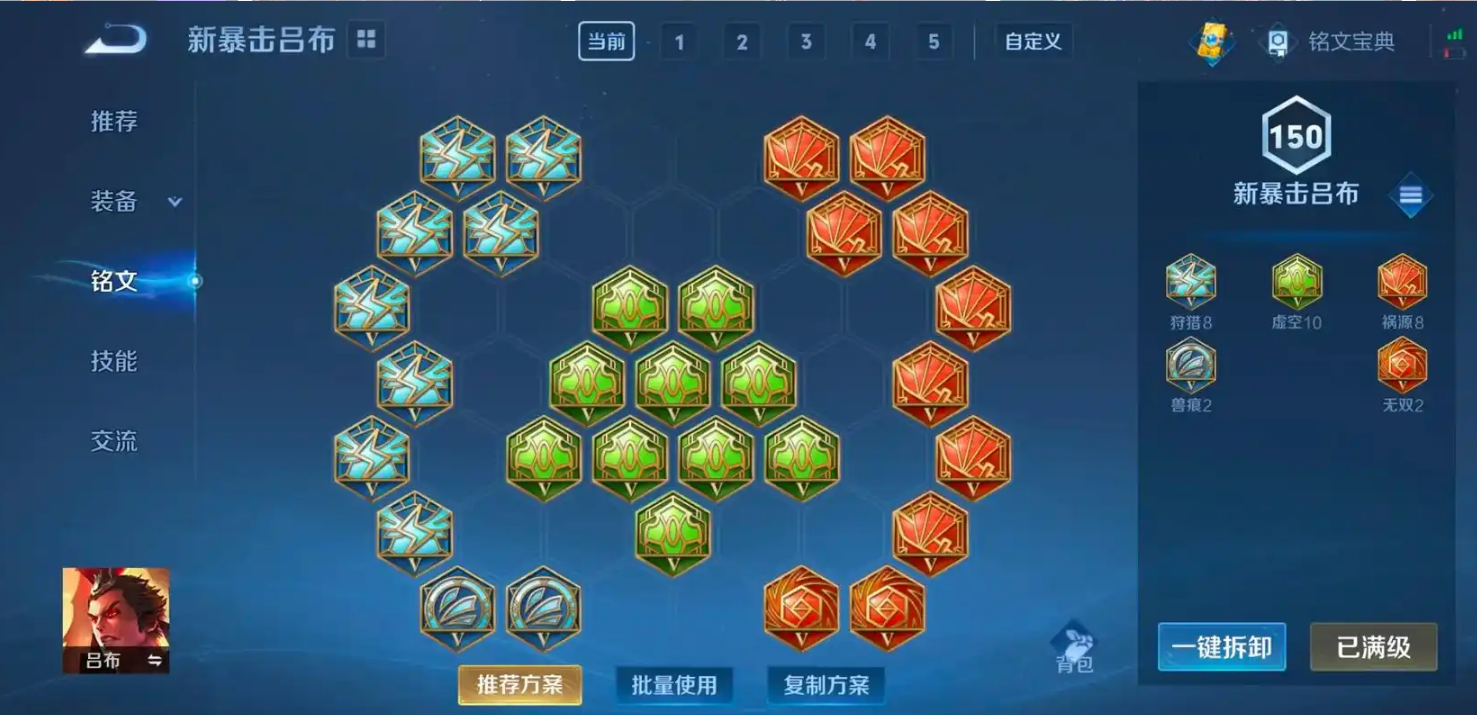 铭文搭配得和出装打配合,5红月5传承配10隐匿10虚空最万金油。红月补攻速暴击,传承加物理攻击拉高真伤基础值,隐匿移速支援快,虚空血量冷却双提升。前期对线别头铁憋破军,先出荆棘护手过渡,抵抗鞋加反甲小件稳吃射手消耗,清完线偷个河蟹经济就起来了。吕布附魔后真伤猛得很,但手短是硬伤,没闪现时站位别太嚣张。