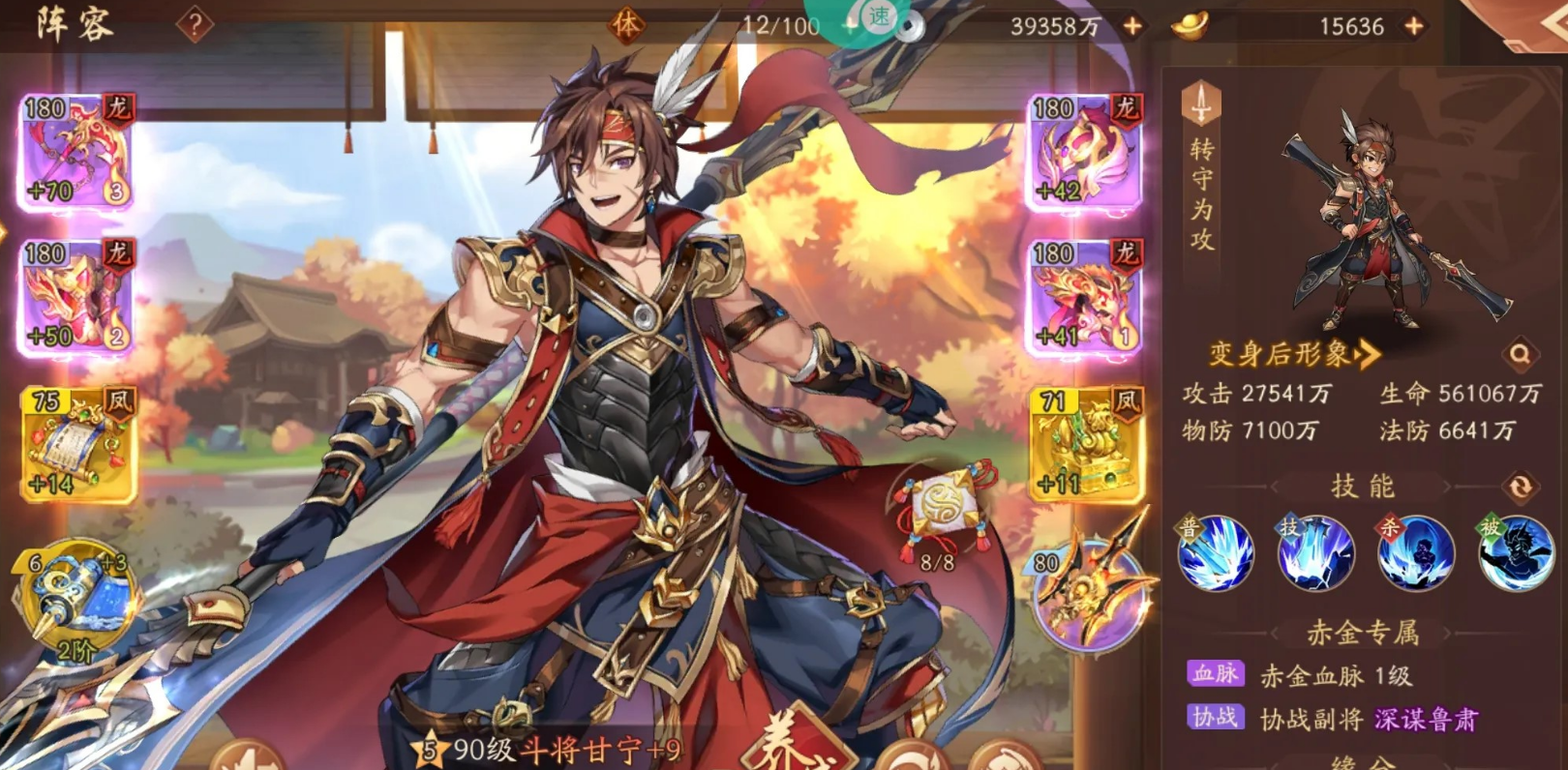 化神系统,这是90级解锁的重头戏,能极大提升武将属性并解锁新技能,务必优先让你的阵容核心武将完成化神。二是装备和神兵,给主力输出如孙坚或周瑜弄一套红装(如霸王套装、惊鸿套装)是质的飞跃,神兵方面,吕蒙可以绑定大夏龙雀刀强化收割,孙坚带青龙刀能给队友加护盾。三是战魂和宝物的搭配,孙坚这类前排可以带不动如山增加抗暴,吕蒙这种收割者带破军提升伤害,宝物精炼集中资源把核心武将的专属宝物等级升高,激活的关键属性加成非常可观。