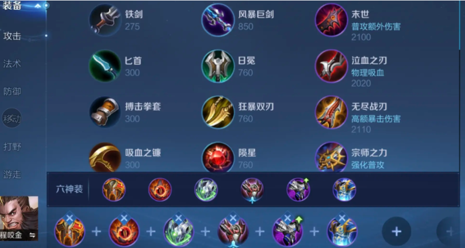 程咬金的出装并不是一成不变的,需要结合对面的阵容灵活调整。如果对面的法师非常厉害,法术伤害很高,那就可以提前做出不死鸟之眼,甚至在做完极寒风暴后补一件魔女斗篷来专门应对。 如果对面有吕布、马可波罗这种带有真实伤害的英雄,反伤刺甲或者不祥征兆的优先级就要提高,因为真实伤害无视护甲,堆高生命值和利用装备的减速、反伤效果会更实用。 又或者到了大后期,为了应对敌方的爆发集火,把一件装备换成贤者的庇护或者名刀·司命来增加容错率也是常见的选择。
