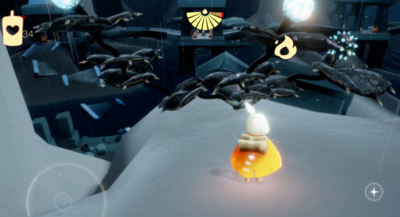 除了硬烧,其实还有一些取巧的办法,就是利用游戏里的一些机制让大花自己炸掉。这个方法不一定每次都成功,但成功了能省不少事。比如在雨林最后一张地图,你可以先别管那朵大花,而是去把通向终点城堡的机关都打开,或者召唤出水母,然后等一会儿,有时候终点附近的大花就会自动炸成烛火。云野三塔图也有类似操作,点燃塔上的白蜡烛召唤出遥鲲,过一阵子塔上的黑暗植物也可能自己爆掉。