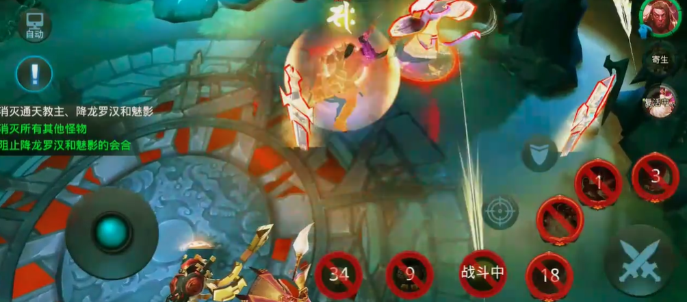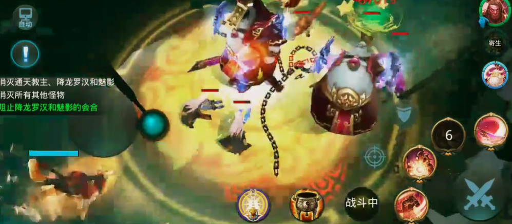 中场会出现两只年兽玩家不应硬拼而是利用隐身技能或贴着战场最右边绕过去,避免消耗战影响节奏。最终BOSS战要优先集火大鹏和青狮精,将他们引到右上角逐個击破,最后再处理白象,这种分步策略可以分散敌人火力并提高通关效率,注意利用地形和技能顺序来优化输出效果。