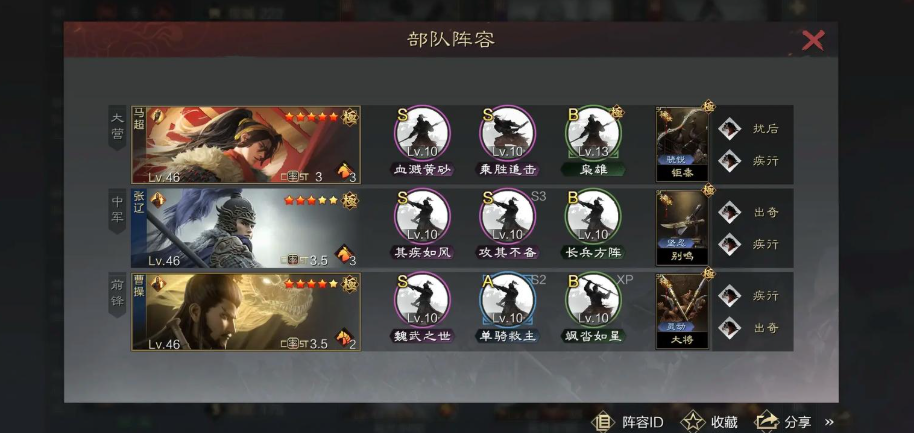 五星刘备和曹操都是核心武将,但他们的强项体现在不同方面。刘备的自带战法皇裔流离能为全军提供高频率的兵力恢复,受谋略属性影响,这使他在持久战中成为不可或缺的辅助角色。曹操的魏武之世则能削弱敌方全体的攻击、防御、谋略和速度属性,同时增加我军的攻击距离,提供了强大的控场和团队增益能力。两者在属性上各有优势,刘备的谋略成长能强化治疗效率,而曹操的防御和速度属性让他在前线或辅助位都游刃有余。