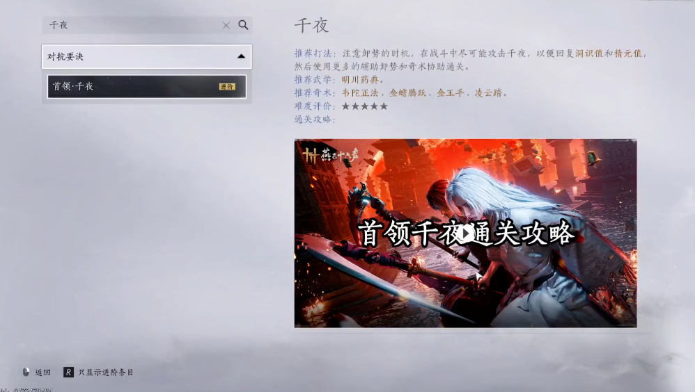 推荐将积矩九剑等伤害可观的武学作为主力输出手段,同时装备扇子作为副武器,以便在关键时刻提供治疗,维持生存能力。装备方面应注重强化,例如将胸甲提升至满级以增加气血上限,某些特效能在危急时刻提供保护。挑战千夜是一个需要耐心熟悉的过程,她的多数招式出手时间固定但节奏各异,熟练掌握其攻击模式与弹反时机是通关的关键。
