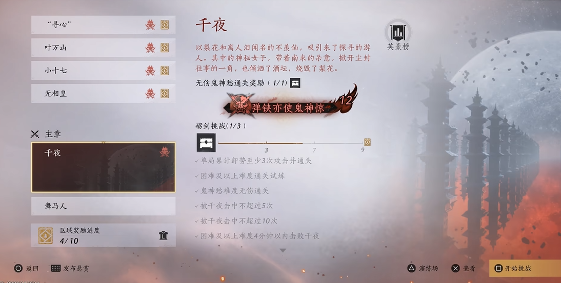 应对妖女千夜这一强力BOSS,其核心在于理解并适应她严格分为三个阶段的攻击模式转换,每个阶段都有独特的机制与应对节奏。战斗伊始,千夜处于普通形态,攻击方式相对常规,主要用于让玩家熟悉其招式套路。玩家需尤其开场通常会伴有一次迅捷攻击,可在听到特定提示音后立即闪避。此阶段最具威胁的技能之一是五连返红光,其中举刀释放的红光攻击必须成功完成弹反,否则将承受连续五次的高额打击。成功化解其攻势并消耗完第一管生命值后,战斗将进入更具压迫感的第二阶段。