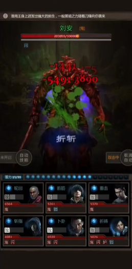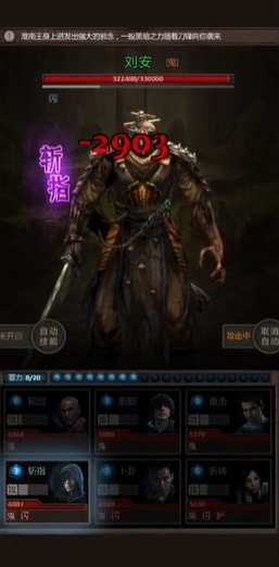 胖子的操作时机是胜负手。刘安战的前面几波小怪相对好对付,这时可以适当控制节奏,让队伍攒满豆子,为最后的决战储备能量。当刘安本体出现,战斗进入白热化阶段,胖子的嘲讽就不能乱开了,一定要留神刘安的行动条。它的折斩技能非常致命,会优先攻击队伍里血量最少的成员,很容易造成减员。胖子需要在预判刘安即将释放这个技能时,提前开启嘲讽技能,确保折斩的伤害打在自己身上。由于胖子血厚防高,加上之前准备的减伤镜子和丹药,硬吃这招的生存概率要大得多。只要成功防住几次关键的折斩,保护好后排的输出和治疗。