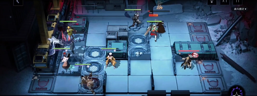 开局后按照阵容站位布置好角色,将坦克放置在前排承受伤害。当精英怪靠近时,使用破核手的技能破坏其核心,如果局长携带的是赋能技能,可以将其用于nox或其他主力输出以加快清场速度。对于滚石虫,在其出现时立即使用开尔文的必杀技等群体控制技能,并配合局长技能引燃来激活地图上的陷阱,从而一次性解决它们。