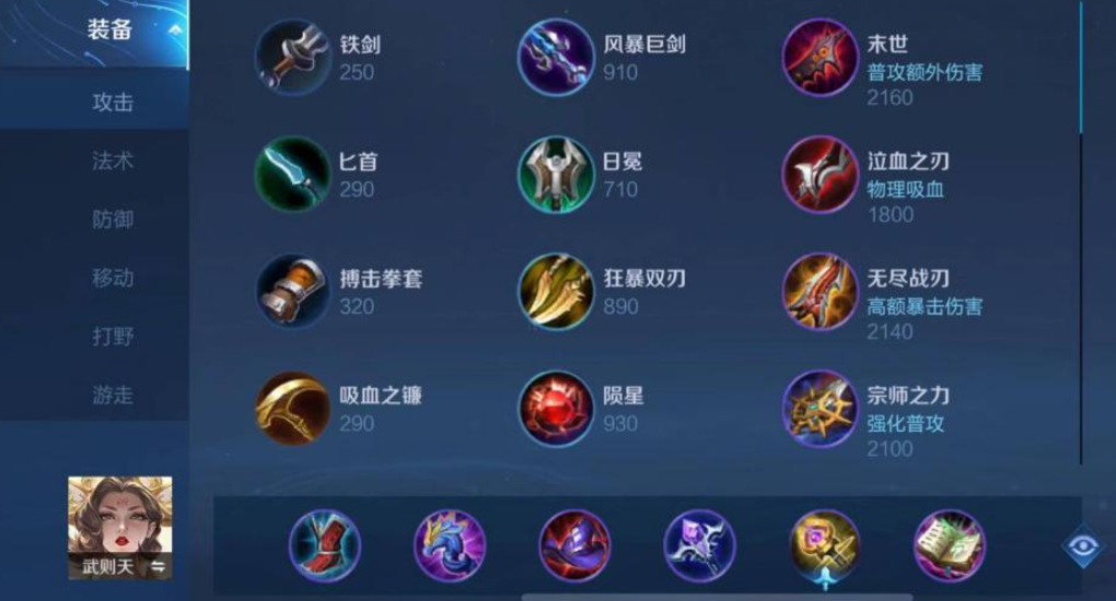 辅助武则天最主流且强力的出装方案是极影·形昭、冷静之靴、痛苦面具、时之预言、破茧之衣和梦魇之牙。极影·形昭的主动减速效果能配合大招打出稳定的控制链,是留人开团的核心。冷静之靴提供高额冷却缩减,让武则天能更频繁地释放技能进行消耗和控制。痛苦面具不仅能进一步减少技能冷却,其被动百分比伤害让武则天即使作为辅助,对坦克英雄也能构成威胁。时之预言增加双抗和生命值,是提升生存能力的关键装备。破茧之衣作为法术辅助的必出装备,与时之预言搭配能获得极高的双抗,让武则天变得非常肉。若敌方回复能力强,梦魇之牙需要尽早做出以进行克制。