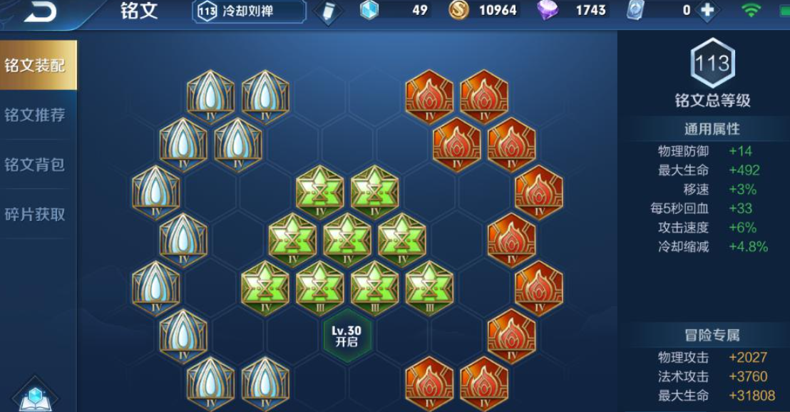要贯彻冷却、移速和功能性的思路。红色铭文选择10个宿命,增加攻速、生命和物理防御,提升前期对拼能力。蓝色铭文选择10个狩猎,提供攻速和至关重要的移速,让刘禅走位和追击更加灵活。绿色铭文选择10个虚空,提供最大生命和冷却缩减,与装备搭配轻松达到满额冷却。这套铭文能确保刘禅在开局就拥有不错的机动性和技能释放频率。CD流刘禅要充分利用高移速进行全局游走。对线期可以快速清线或帮助队友后,利用疾步之靴迅速转线支援,配合打野进行gank。刘禅的一技能接二技能连控非常稳定,抓人成功率很高。击杀或逼退敌人后,要毫不犹豫地召唤队友一起拆塔,利用技能对防御塔的干扰和伤害效果快速建立优势。