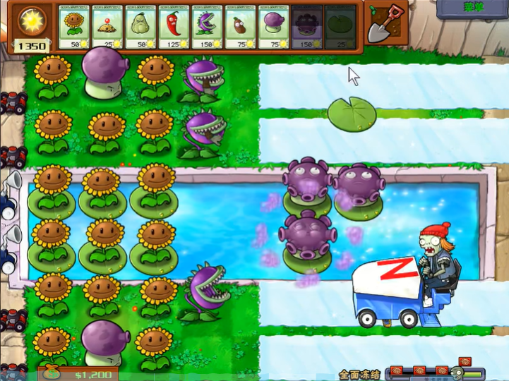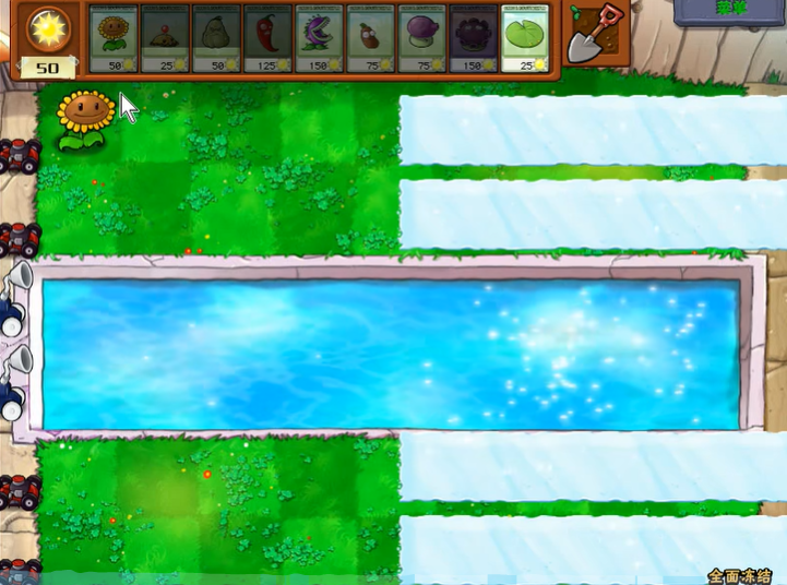 前期放置水草过渡,中后期在清理掉冰道后,于荷叶上种植两排豌豆射手通常即可应对。如果资源充裕,可以在无冰道的水路最后方放置地刺王,前方用两个地刺保护,以应对可能出现的潜水僵尸。水上基本不用管,先用水草,后来有钱了把没冰道的最后边放地刺王。冰道消失后才能种植物,辣椒别急着用,等地刺成型再清理冰道会更稳。进入关卡后期,僵尸的进攻波次和数量会显著增加,对应急反应和资源管理能力提出更高要求。此时应保持冷静,火爆辣椒和倭瓜应留作应急手段,专门处理那些突破地刺防线的僵尸集群或突如其来的雪橇车小队。需要时刻留意防线完整性,当地刺被僵尸消耗后要及时补充。只要保持地刺的完整度,及时补充被消耗的防御植物,通关并不难。