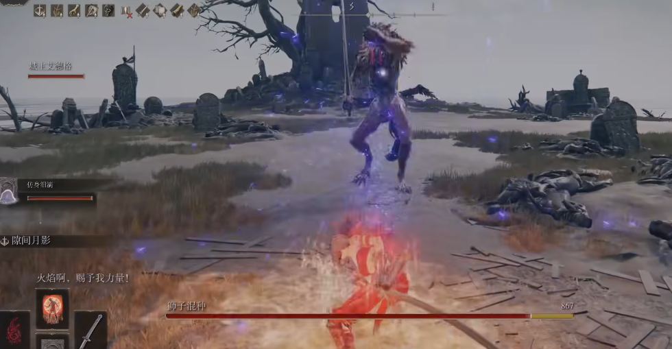 与城主对话后,返回之前提到的赐福点附近,跳下并继续深入探索。通过跳入房顶的洞窟、攀爬梯子等方式在城内部前进,最终可以抵达城墙监牢旁的赐福点。过桥并爬下梯子后,便来到城后的海滩区域。此处有一场与BOSS狮子混种的战斗,在此场战斗中你可以召唤城主艾德格作为帮手一同作战。击败狮子混种后,便能获得传说武器剑骸大剑,这也正是艾德格所守护的摩恩城宝物。