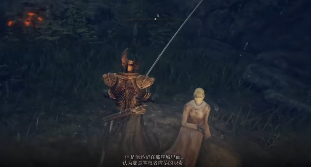 进入摩恩城后,乘升降机上升,从堆积尸体的房间旁进门并爬上梯子抵达城墙顶部。沿城墙前进,注意从围栏缺口处跳下,下方有赐福点可供休整。探索附近可向下爬的梯子,通过它们可以抵达对面塔楼的顶部,城主艾德格就在此处。与他对话并将伊蕾娜的信件交给他,他会表示因守护城内宝剑剑骸大剑的责任而无法离开,并请求你传话给女儿。