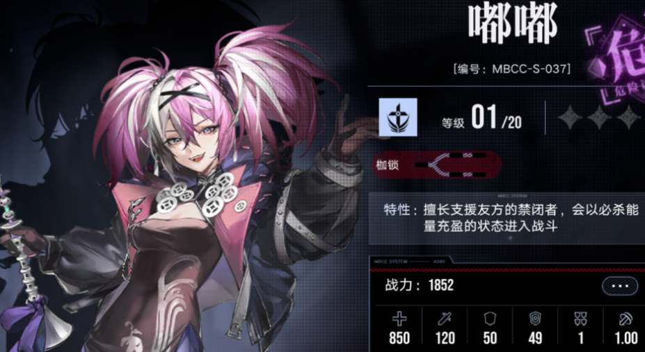 安是一名危级禁闭者,职业为启迪,她擅长提供法术伤害类型的辅助。嘟嘟同样是启迪职业的禁闭者,编号S-037,其异能乐声引凤来专注于通过音波刺激目标的生理机能,以达到治疗与强化效果。从基础定位看,两者虽同属辅助范畴,但安偏向于带有伤害属性的支援,而嘟嘟的机制则更纯粹地围绕增益与恢复展开。