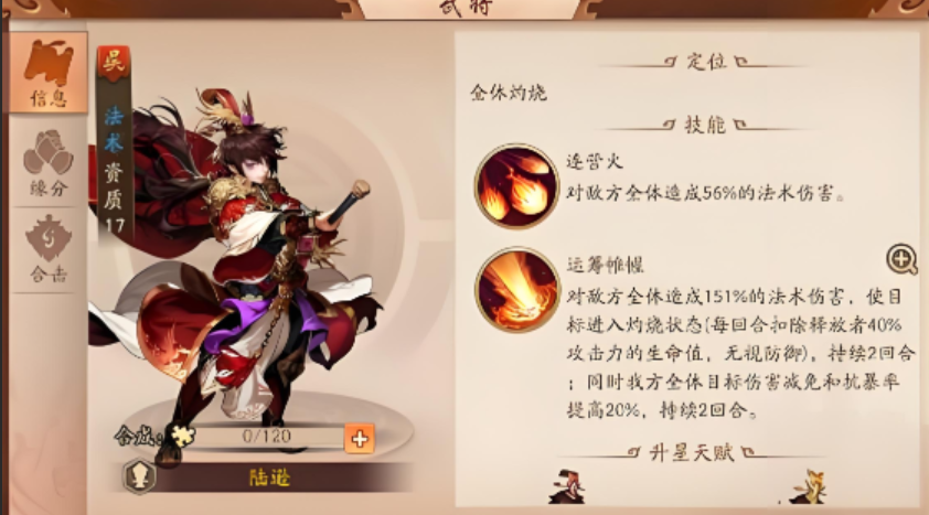 穷奇对于周瑜和吴国灼烧流的重要性还体现在它能改变战斗的先手格局,高星级的穷奇拥有强大的开局减怒能力,从二星开始就能必定减少敌方一名武将的怒气,达到五星时可开局减怒两人,七星时甚至能减怒三人,这种能力有效打乱了敌方的技能释放节奏,为己方周瑜创造更安全的输出环境,让灼烧效果有更多回合可以持续生效,从而拉长了战斗回合,增加了战术变化的可能性。