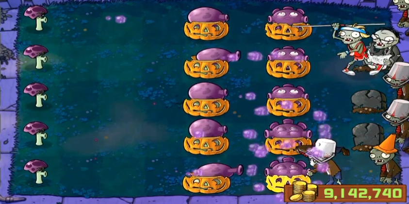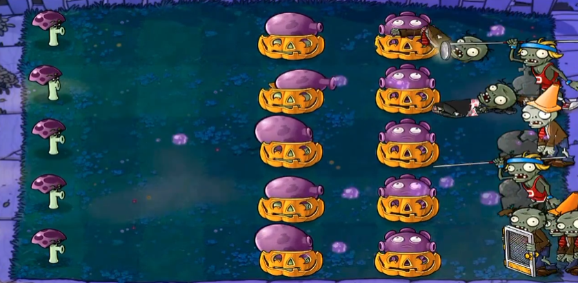 应对本关出现的各类特殊僵尸需要提前准备对策。气球僵尸会从空中偷袭,必须预留阳光来种植仙人掌或使用三叶草进行克制。磁力菇在本关作用巨大,它能吸走铁桶僵尸的铁桶、矿工僵尸的铲子以及玩偶僵尸的爆炸盒子,极大削弱这些高威胁僵尸的战斗力。对于会从后方地道突袭的矿工僵尸,除了用磁力菇,还可以考虑在最后一排反向种植喷射蘑菇来应对。记住给关键植物,尤其是磁力菇和作为引导核心的大蒜套上南瓜头,是保护它们不被快速摧毁的重要措施。