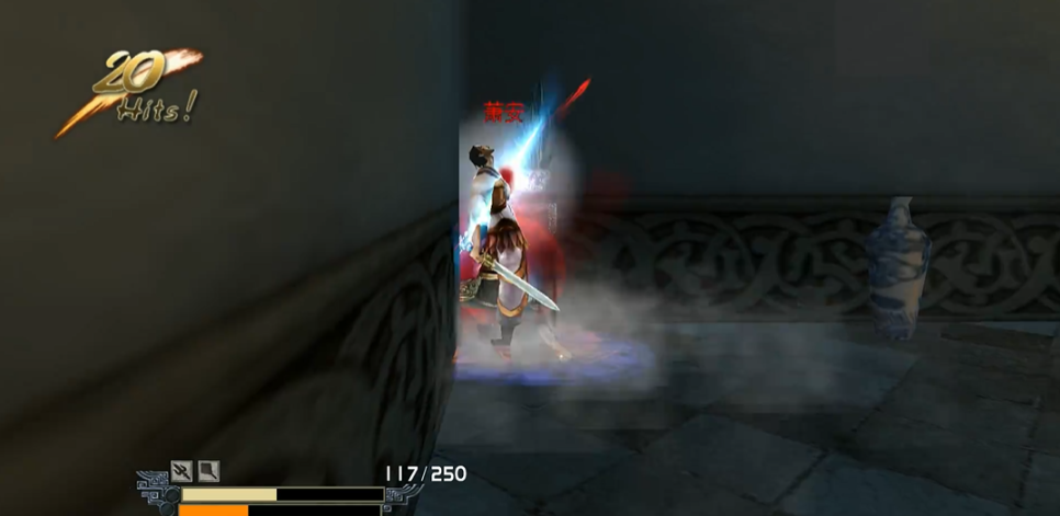战斗前可先使用暗器↓↓A让萧安中毒减速,限制其移动与攻击频率,随后衔接空中连击压制血量,战斗中左右护法会快速支援,此时需根据自身血量灵活应对,血量充足就持续猛攻萧安,血量不足则暂退至安全区域补给,萧安追击时常会落单,可抓住机会反打,同时注意场边的凳子,切勿打碎,凳子内藏有补血包子,被萧安食用会大幅提升其续航能力,增加通关难度。