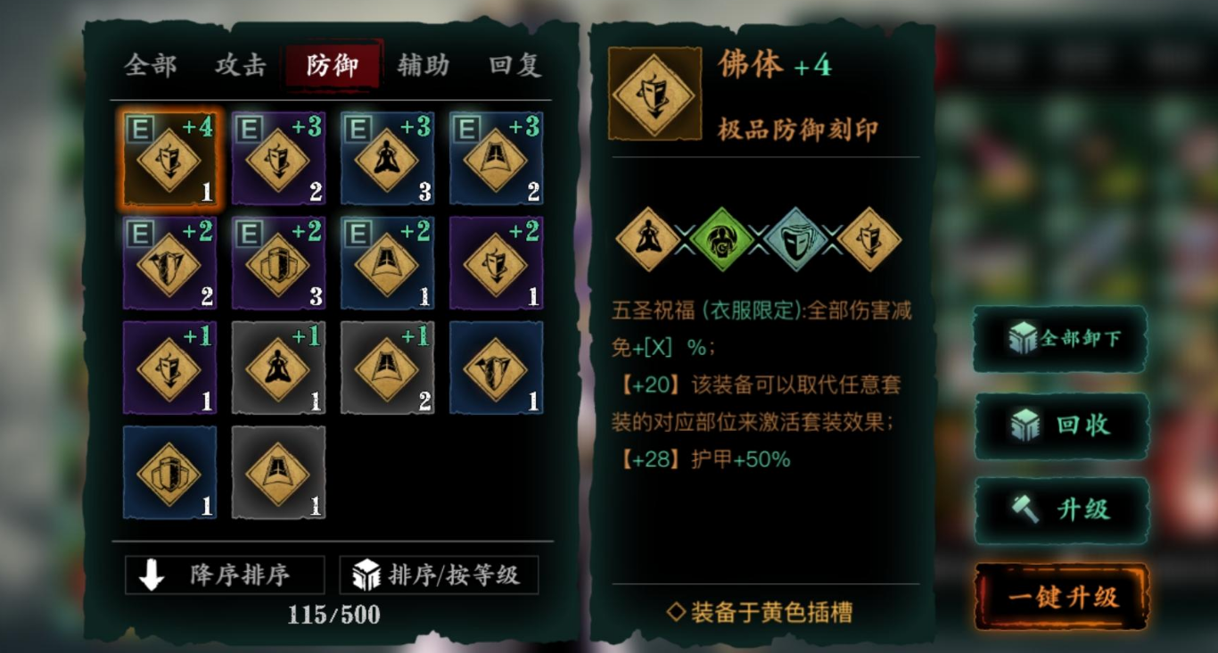 实际操作中需注意清洗策略的灵活性。五圣刻印孔存在颜色槽位限制,特定刻印需对应颜色槽位才能镶嵌,因此清洗时不仅要关注属性数值,还需考虑槽位兼容性。对于暂时无法完美匹配的刻印,可先保留过渡属性,待后续获取洗练锁等道具后再精细化调整。部分特殊刻印如五圣祝福具有替代套装部件的效果,这类刻印一旦洗出优质属性即可大幅提升配装自由度,值得投入资源重点培养。