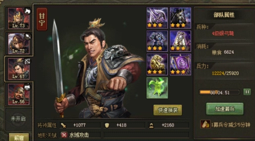 廖化的被动技能会根据怒气值提升防御和输出,因此需通过快速击杀其部将减少其怒气积累。甘宁或太史慈等拥有两次战法的武将可作为收尾角色,在廖化残血时补足伤害。若使用甘宁,需确保其最后一击能触发战法,配合许褚的残血战法形成连击效果。