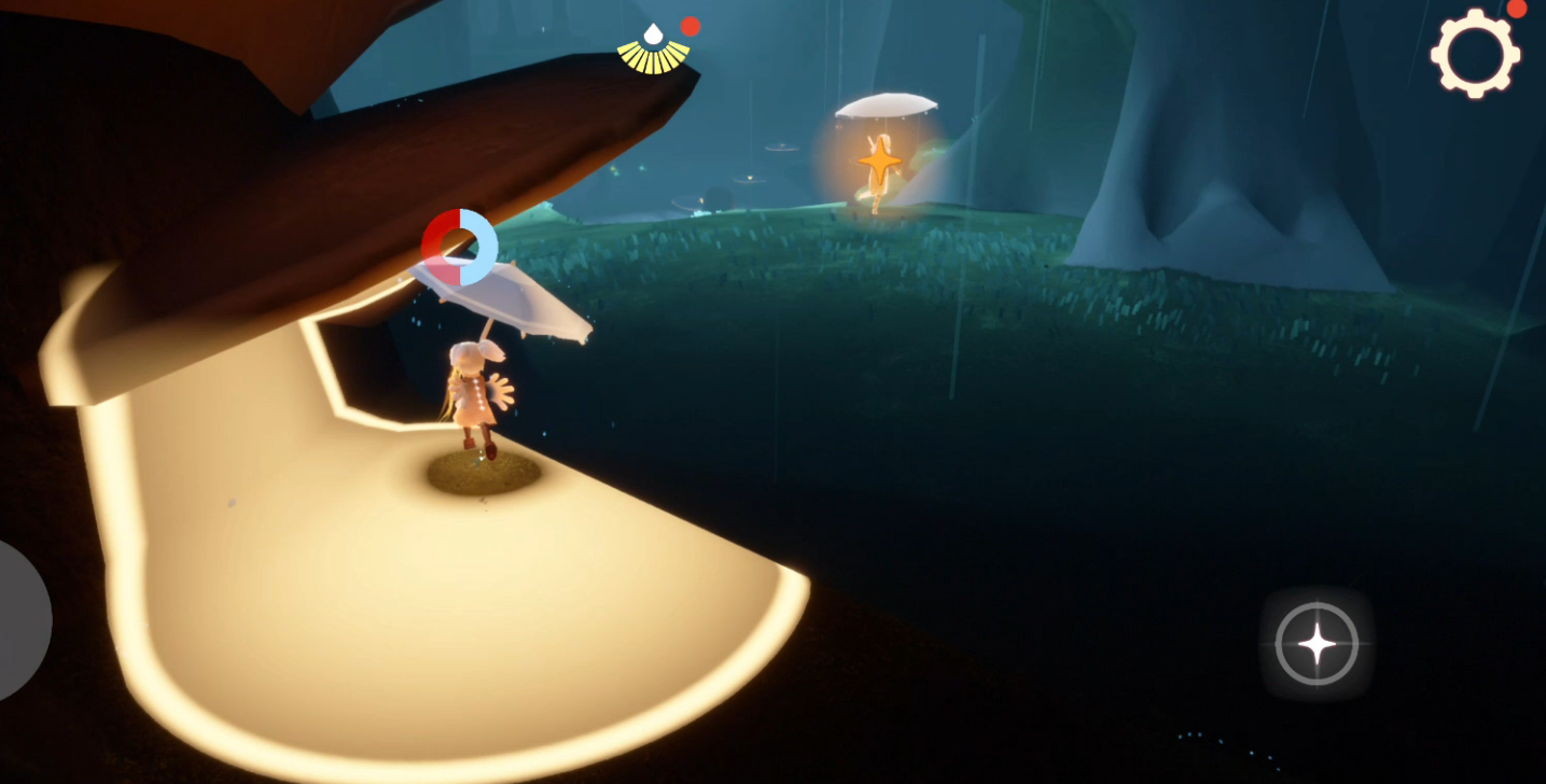 接下来要做的就是护送小火苗啦,这可是个技术活。护送过程中,咱们头顶会有一个蓝色进度条,如果被雨淋到就会慢慢变红。一旦全红了就得重来,所以一定要找大树或者蘑菇底下躲雨。可以趁着雨小的时候快速移动,等进度条快变红就赶紧找地方躲着恢复。慢慢来别着急,多试几次总能找到节奏。
