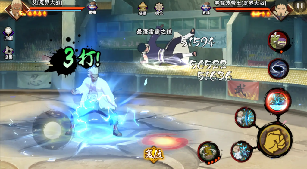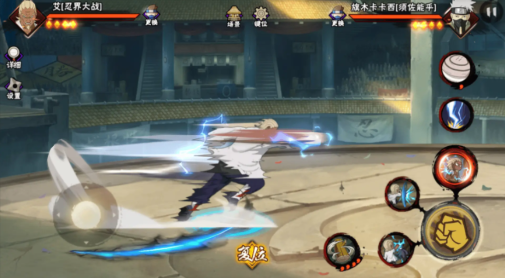 该阵容对站位有严格要求,建议将雷影置于前排1手位承担主攻,中排3手位配置具备控制能力的辅助忍者,后排4手位安排高爆发输出。面对拥有空中技能的忍者时需谨慎,如迪达拉的起爆黏土·枭或宇智波鼬的天照均可打断雷影技能。针对地面型忍者如春野樱、旗木卡卡西等则优势明显,其地面技能无法打断雷影的空中机动。战斗中可通过替身术规避关键控制,但需保留至少一个替身术应对敌方奥义反击。