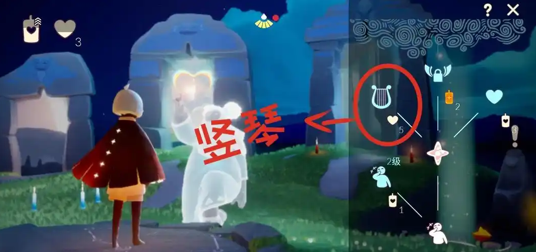 找先祖时记得先解锁他们的动作节点。常驻先祖的位置很固定:云野钟塔图的蝴蝶洞里有竖琴先祖,霞谷溜冰场终点大门上方藏着电子琴先祖,墓土三龙图害怕动作的先祖能换圆琴。季节先祖的位置会变,但复刻时系统会提示。如果找不到,可以跟着攻略视频跑图,或者问问其他小伙伴。解锁先祖后,回遇境点星盘,找到对应地图的星座,召唤先祖就能看到兑换树,爱心够的话直接换。