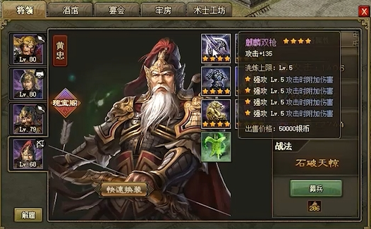 刘备、黄忠等T0级武将可提升晶石副本通关率,诸葛亮等辅助型武将能延长战斗时间获取更多资源。觉醒武将消耗的觉醒石与神石进阶存在资源竞争,需根据当前战力缺口动态调整分配比例。御宝系统在171级开启后,通过青铜剑等基础御宝可增强晶石掉落概率。国战期间主将经验加成最高可达170%,这是快速提升神石等级的重要窗口期。
